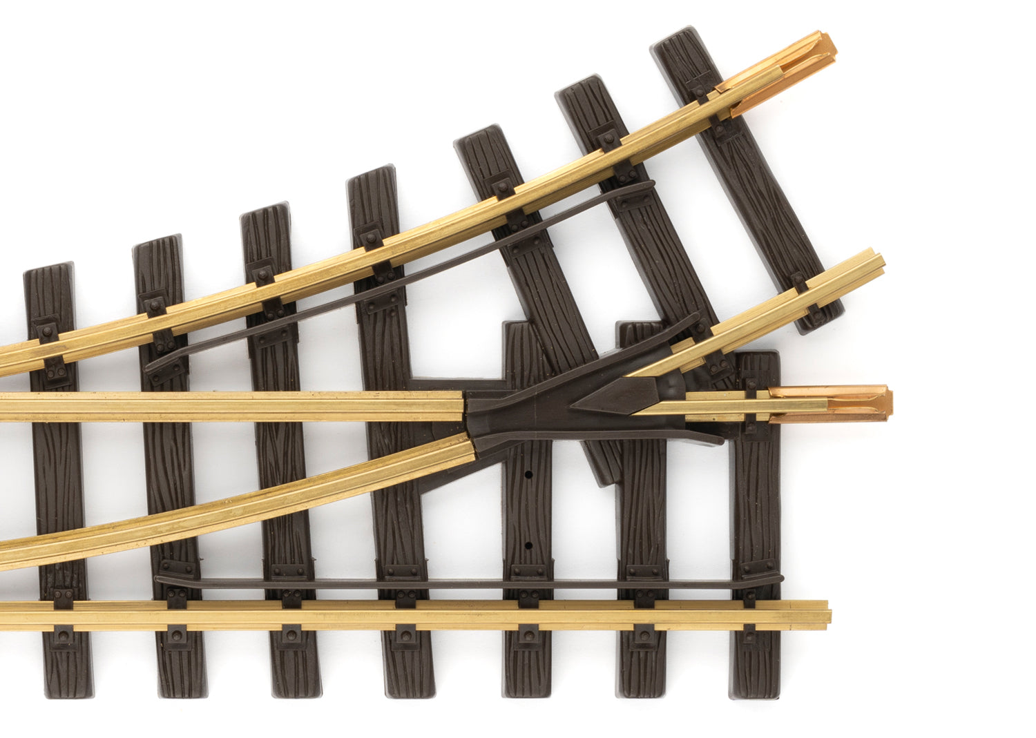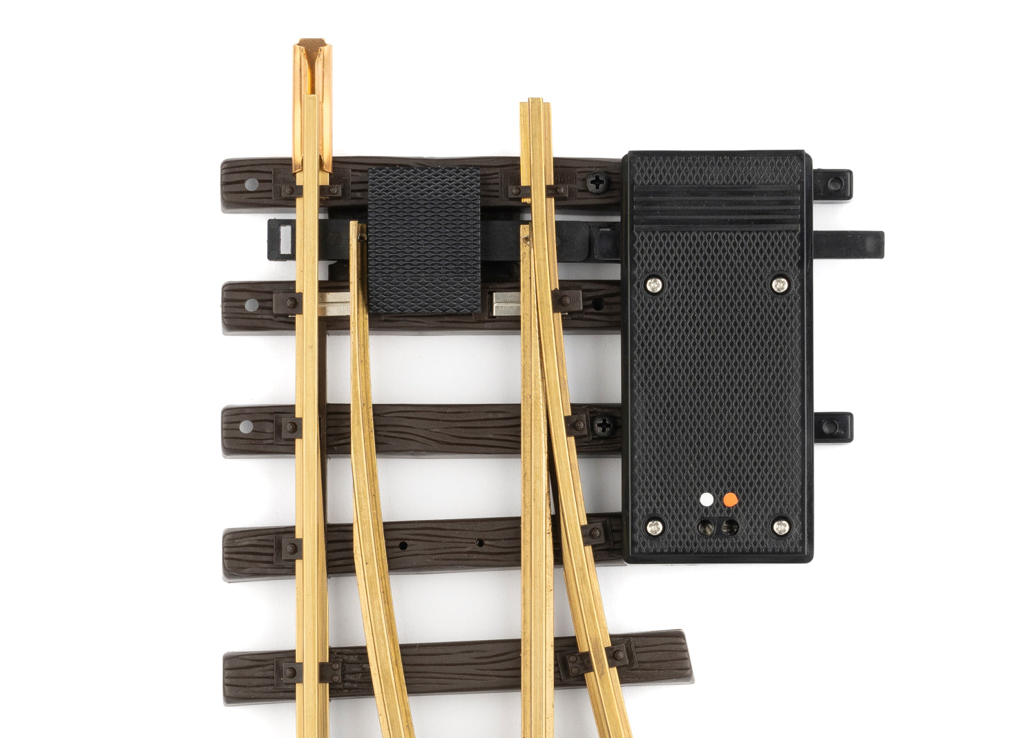 Gerades Gleis: 300 mm. Abzweigendes Gleis: links, R1. 30 °. Der beiliegende Antrieb (LGB 12010) lässt sich rechts oder links an der Weiche montieren. Die Schaltung kann mit dem LGB Stellpult (LGB 51755) o.ä. erfolgen.