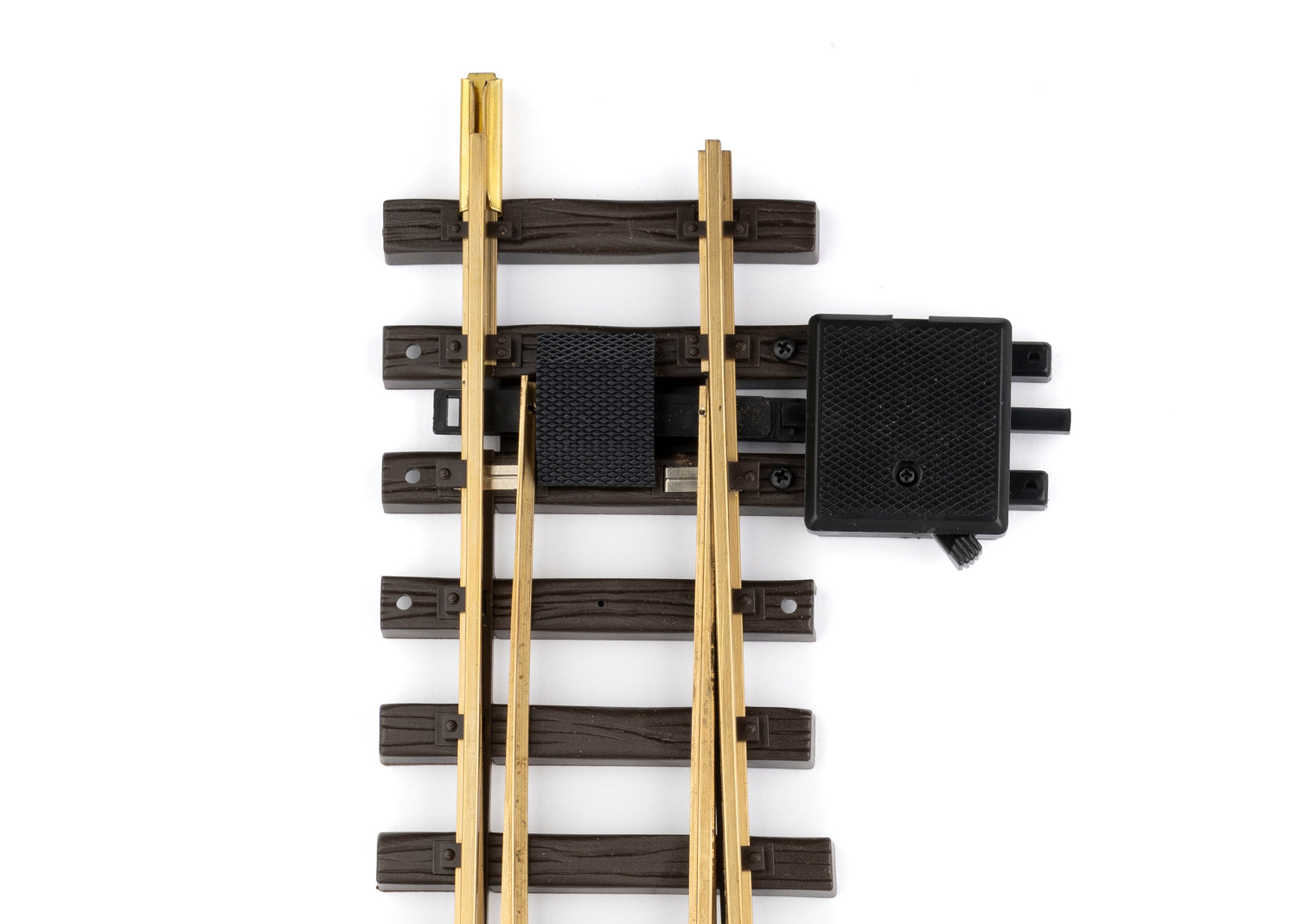 Gerades Gleis: 600 mm. Abzweigendes Gleis: links, R5, 15°. Der Handweichenantrieb lässt sich links oder rechts an der Weiche montieren. Nachrüstbar mit dem elektrischen LGB Weichenantrieb (LGB 12010). Ein Gleisstück 150 mm (LGB 10150) beiliegend.